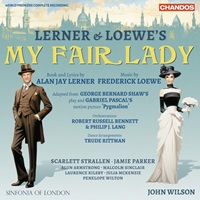 (4.5 / 5) This first-rate studio cast album begins with arguably the best performance of the My Fair Lady overture ever recorded; aided by superb audio engineering and state-of-the-art digital sound, conductor John Wilson leads the Sinfonia of London in a definitive presentation of these three minutes of musical theater heaven. Happily, such excellence exists throughout the entire album, which, like its predecessor on the JAY label, is a note-complete recording of the score. Here we also get large chunks of delicious dialogue as lead-ins to the songs and wherever the spoken word is closely interwoven with music. The pacing of the performance is exemplary and sometimes revelatory — for instance, the very slow and tentative beginning of “The Rain in Spain,” as Eliza is trying with all her might to pronounce that phrase properly, followed by a steady, exciting build of tempo as Higgins, Pickering, and Eliza herself are thrilled to realize that she has finally “got it.” In terms of casting, all is more than well: Jamie Parker is an energetic, youthful Higgins, petulant as appropriate yet refreshingly and effectively underplaying several of the character’s more emotional moments. Guided no doubt by Wilson, Parker makes consistently smart choices regarding how much of the role to declaim in sprechstimme and how much to actually sing. If Scarlett Strallen doesn’t deliver Lerner’s lyrics quite so pointedly as did Julie Andrews and some other previous Eliza Doolittles, she’s still a great pleasure to hear in the role due to her gorgeous soprano voice, and as is true of any successful Eliza, she sports convincing accents as both the Cockney flower girl and the grand lady of society. On the minus side, Malcolm Sinclair lacks the right sort of jolly-old-English comic style one wants in Pickering; but Laurence Kilsby as Freddy sings “On the Street Where You Live” ardently, and Alun Armstrong is a delight as Alfie Doolittle. Vivid cameos by Julia McKenzie as Mrs. Peace and Penelope Wilton as Mrs. Higgins are icing on this delectable cake. — M.P.
